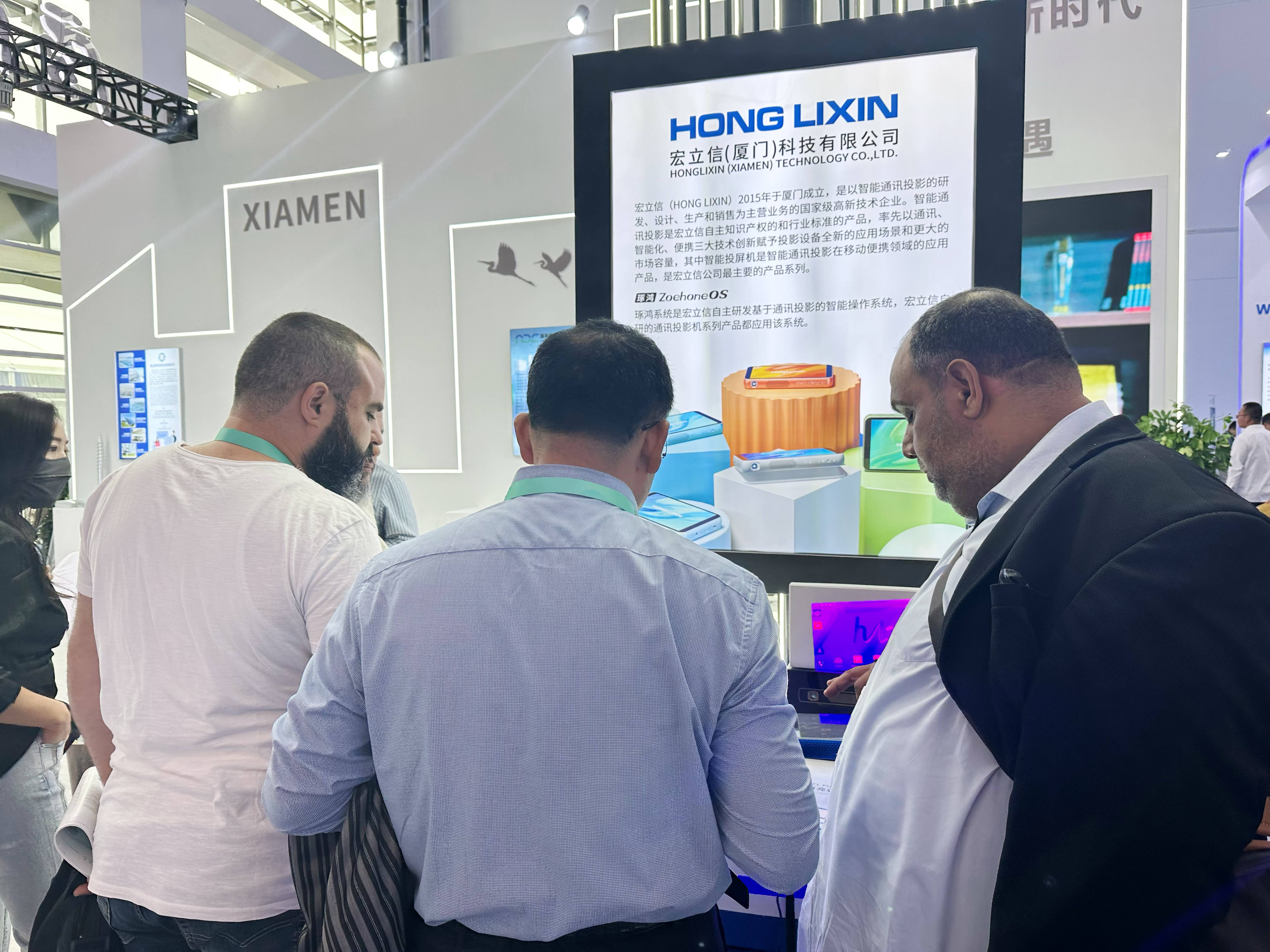 第六屆中國-阿拉伯國家博覽會盛大開幕,宏立信與廈門其他12家高科技企業一同參加,這是宏立信智能投屏機首次在大西北寧夏銀川亮相,展館現場,智能投屏機展現了差異化功能和使用場景,吸引了海內外客商體驗,并意向帶去他們國家合作.